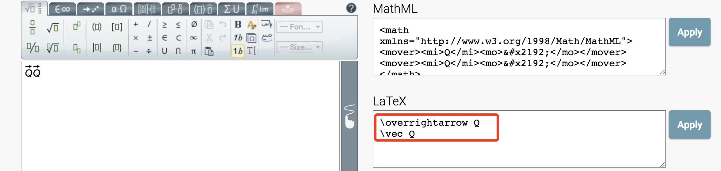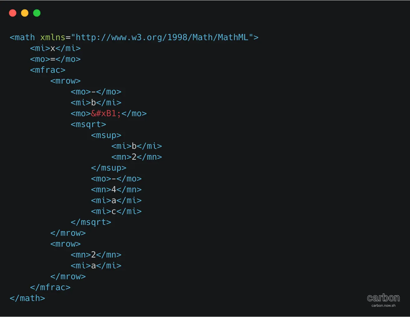 一段mathml和对应的展示