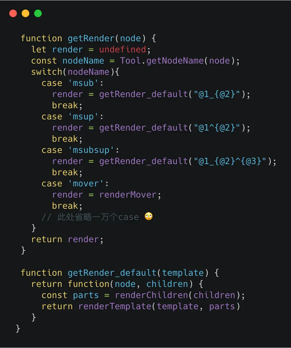 - leaf节点相对简单 直接根据tagname类型返回对应的latex语法