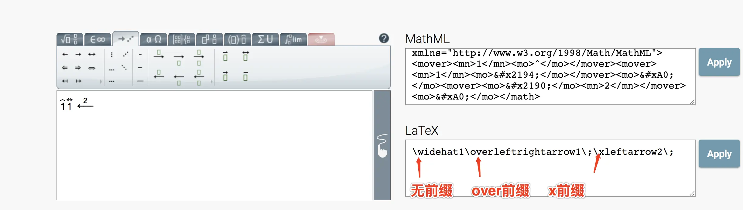 通过mathjax latex2mathml 后的mathml文本不能被富文本编辑器正确展示。--目前针对特殊情况特殊 处理 后续改造方案