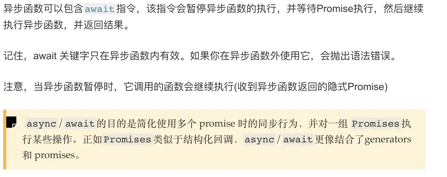async用来定义一个返回 AsyncFunction 对象的异步函数,它会通过一个隐式的 Promise 返回其结果。如果你在代码中使用了异步函数,它以同步的写法去执行异步的代码;使用场景:连续的异步请求下,下一步的异步请求依赖于前一步的异步请求结果。 -