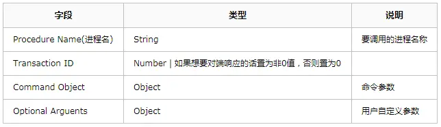 第三个字段中的Command Object中会涉及到很多键值对,这里不再一一列出,使用时可以参考协议的官方文档。