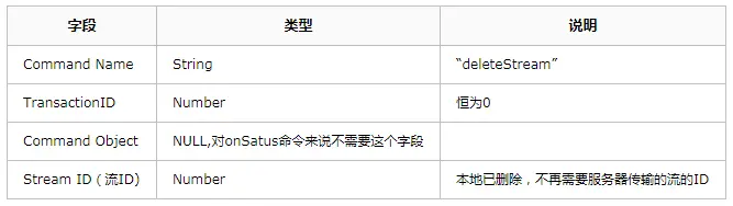 4.1.2.3 deleteStream(删除流):用于客户端告知服务器端本地的某个流对象已被删除,不需要再传输此路流。