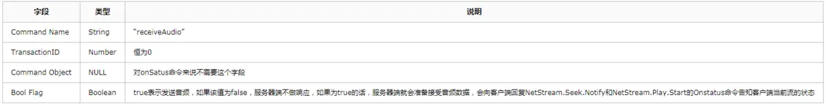 4.1.2.4 receiveAudio(接收音频):通知服务器端该客户端是否要发送音频