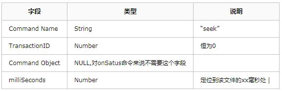 4.1.2.7 seek(定位流的位置):定位到视频或音频的某个位置,以毫秒为单位。