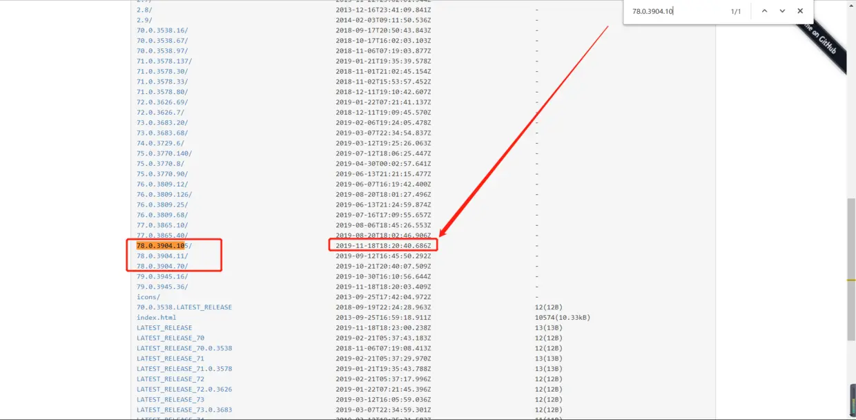 可以看到提供下载的版本挺多的,按照chrome版本号Google Chrome 78.0.3904.108搜索一下,如下: