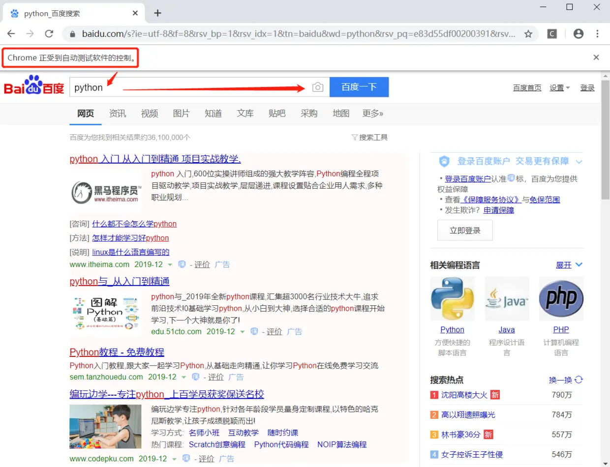 # 在百度搜索框中输入关键字"python"