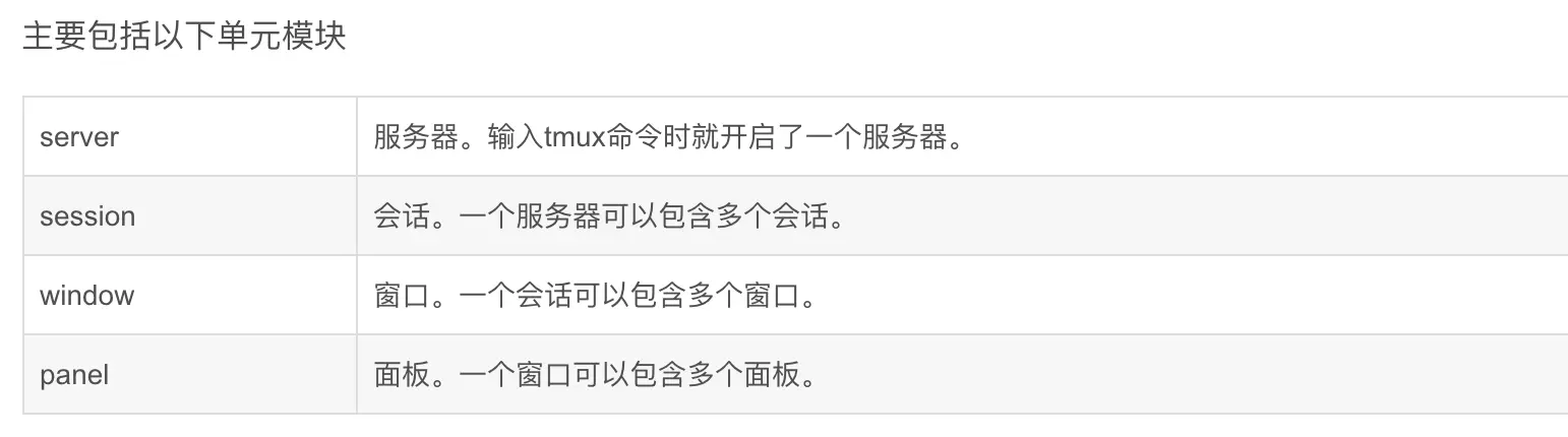 tmux a -t foo # 恢复名称为 foo 的会话,会话默认名称为数字 -->常用