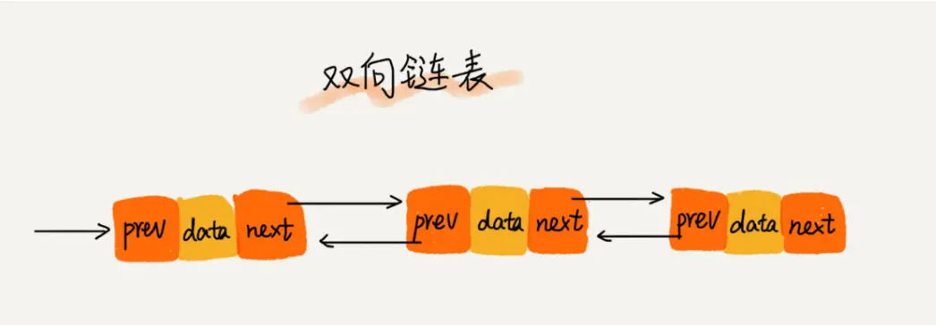 链表通过“指针”将一组零散的内存块串联起来使用,每一个元素(节点)通过指针指向它的下一个元素,最后一个节点的下一个指向为null,而双向链表就是除头节点的每一个元素都有指针同时再指向它的上一个元素。链表不同于数组,由于其地址的不连续,且元素占用大小的不确定,所以没法根据地址直接取值,获取元素时需要遍历访问,而双向链表相比于单向链表,一定程度上占用了额外的内存,但支持了双向遍历,加快了元素索取。