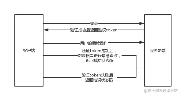 下图是一种常见的鉴权流程。客户端输入用户名密码等身份信息,服务端生成一个 Token(Token 可以是 User 唯一能识别身份的非敏感信息通过鉴权的加密方式生成),然后再将 Token 返回给浏览器客户端,再次访问服务器时带上Token 信息,服务器会使用同样的鉴权方式对 Token 进行验证,Token 验证一致后执行具体操作。