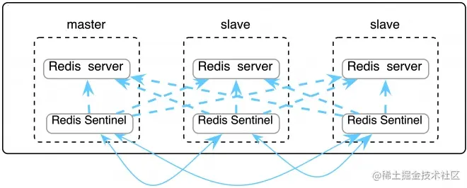 - sentinel: 通过 Sentinel 监控主从实例,自动进行故障恢复,该方案有个缺陷:因为主从实例地址( IP & PORT )是不同的,当故障发生进行主从切换后,应用程序无法知道新地址,故在 Jedis2.2.2 中新增了对 Sentinel 的支持,应用通过 redis.clients.jedis.JedisSentinelPool.getResource() 取得的 Jedis 实例会及时更新到新的主实例地址