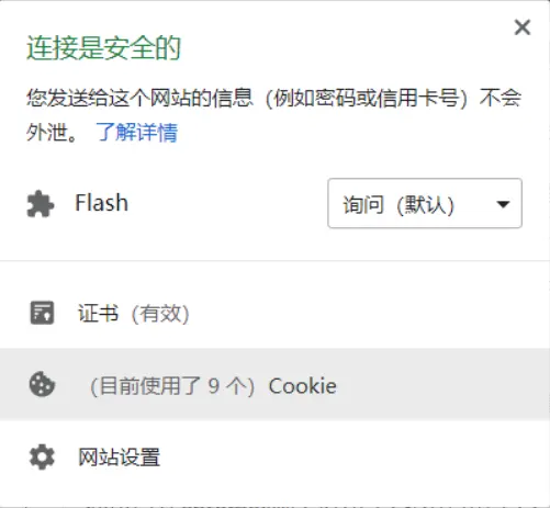 你可以在chrome浏览器中点击这里查看此某网站所有cookie: