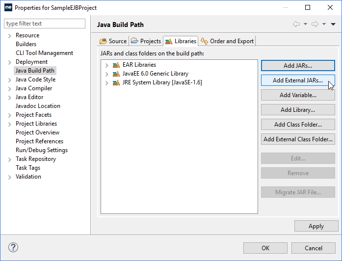 单击“Libraries”选项卡,然后单击“Add External JARs”。
