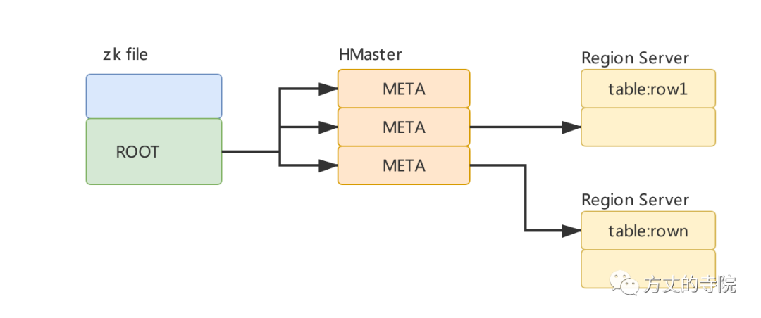 Root tableRoot table是用来记录META表信息的,存储在ZK中。