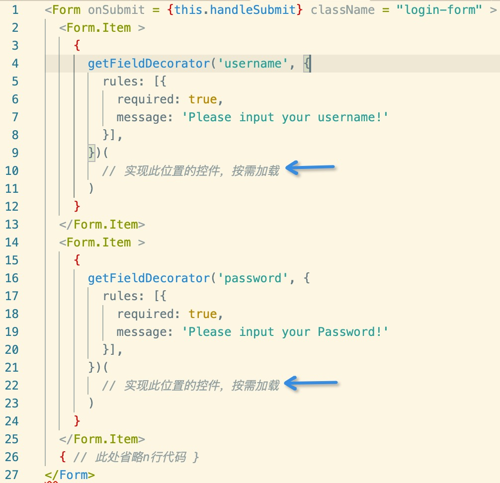 上面,是react-loadable的一部分源码。所以,ant中的getFieldDecorator包装后,一旦Form中的任何一项组件(Input之类的)值改动(onchange),Form要更新,便会引起所有组件重新生成。