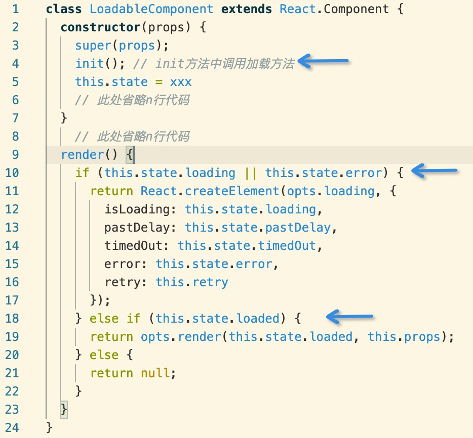 对应到react-loadable的代码,便是:任何一个控件(例如Input)触发onchange,Form更新,所有控件重新进constructor,执行对应的init,然后render,第一次render进第一个if,第二次render进第二个if。