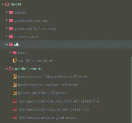 mvn clean test surefire-report:report,site下生成html的汇总报告,在surefire-reports下为各个文件的详细报告
