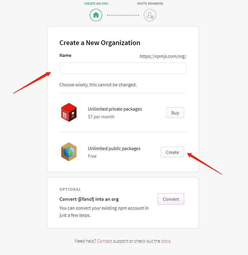 5、在npm中 profile Sttings 创建一个新的 Organizations (不能重名 比如 iview1414)