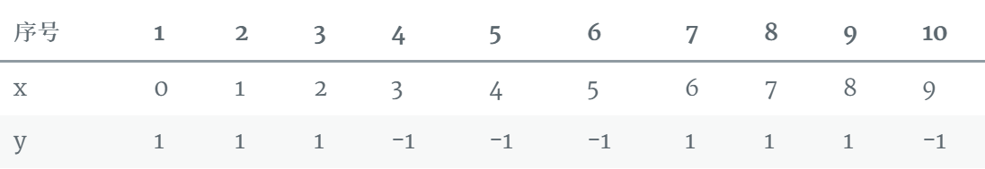 《统计学习方法》上面有个小例子,可以用来加深印象有如下的训练样本,我们需要构建强分类器对其进行分类。x是特征,y是标签。