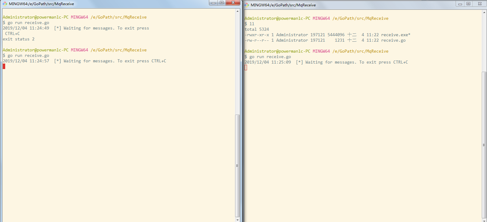 log.Printf(" [*] Waiting for messages. To exit press CTRL+C")