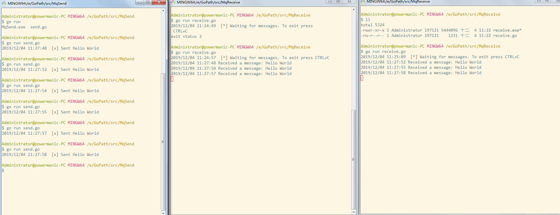multiple为true时,会将此通道内之前所有未确认的消息一起确认掉,通常用于批量确认的场景;为false的时候则只确认一条消息。所以修改一下之前消费者的代码: