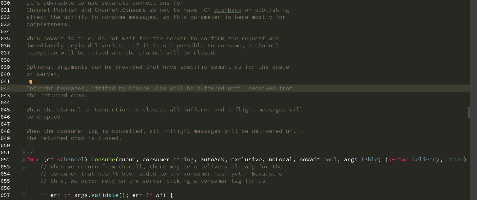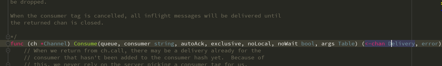 那么如何手动确认消息呢,可以看到在Consume的方法里,返回的主要参数是一个Delivery类型的通道