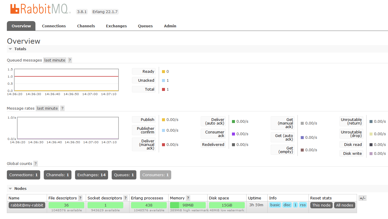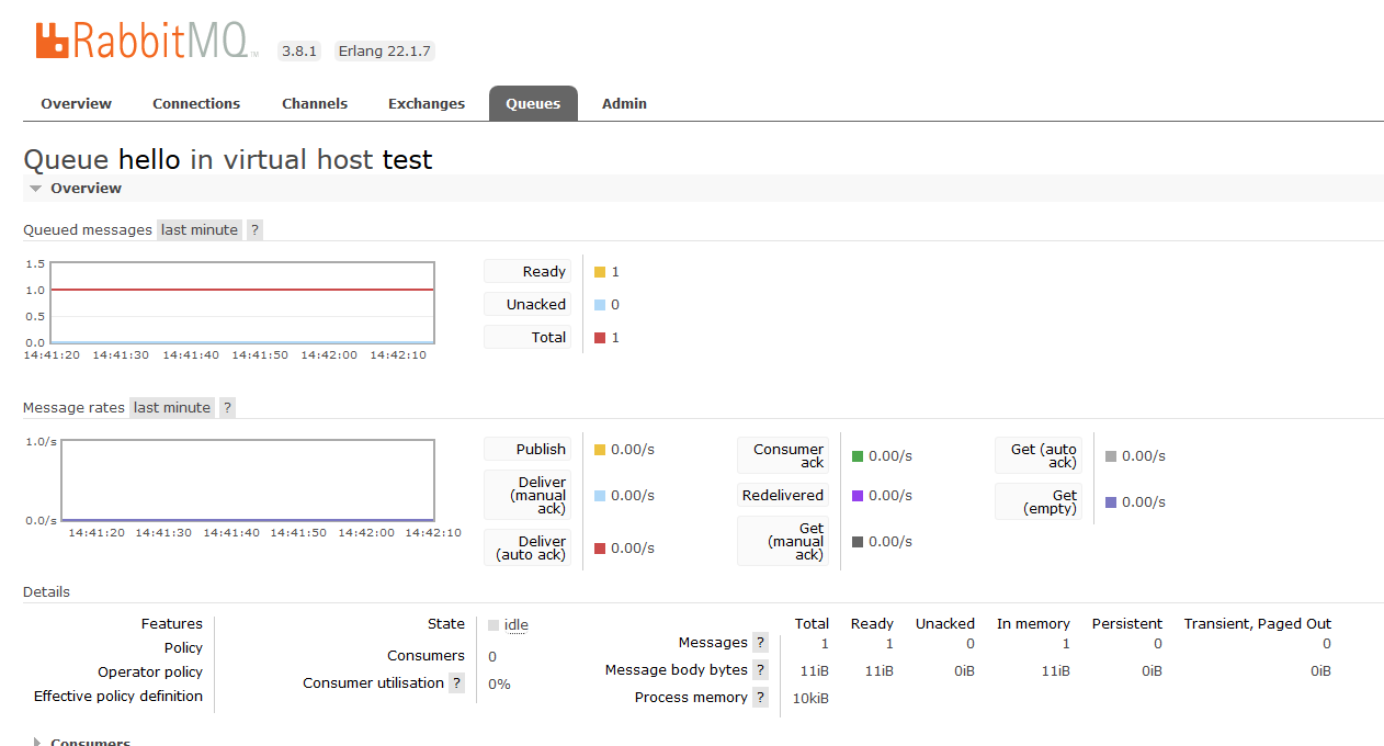 我们将消费者进程停止掉,再去观察控制台发现消息重新变成了Ready状态