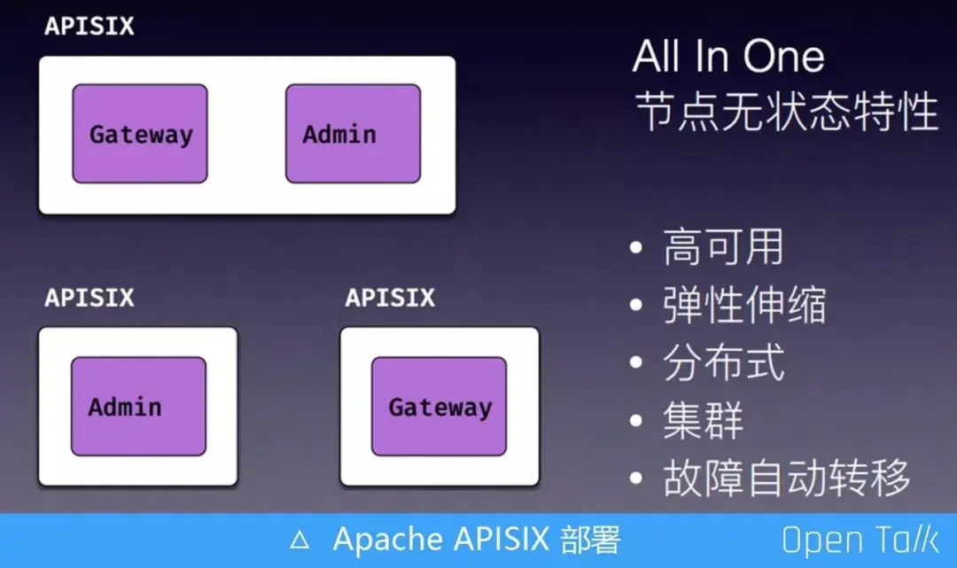 真正能够让用户安心的方案应该是 API Gateway、配置中心、控制中心都能够完整支持高可用,作为一个微服务 API 网关需要部署灵活,API Gateway、etcd、管理控制台均需要满足任意数量伸缩,需要多少就部署多少。
