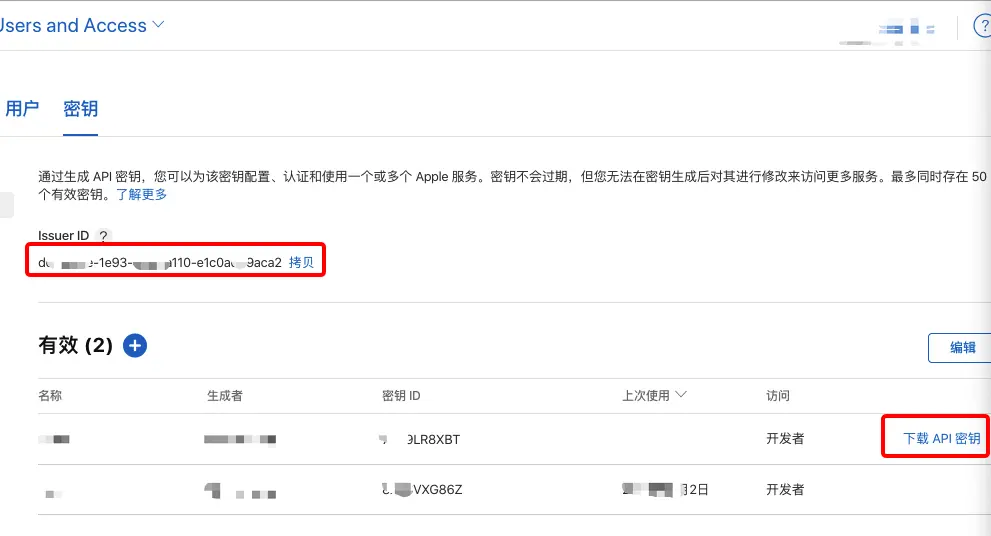 下载得到一个AuthKey_xxxxx.p8的文件,这个文件一定要放在./private_keys或~/private_keys或~/.private_keys或~/.appstoreconnect/private_keys,任意一个即可