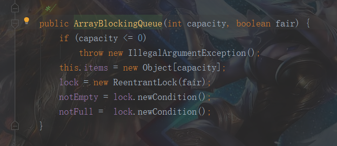 因为ArrayBlockQueue是基于AQS来实现同步安全的,所以参数 fair 代表的使用公平锁还是非公平锁