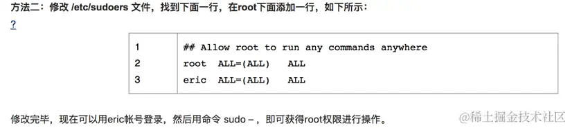 让root用户在/etc/sudoers文件中给指定的普通用户赋予一定的root权限。