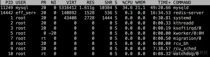 I:(Idle),空闲状态。用在不可中断睡眠的内核线程上。硬件交互导致的不可中断进程用D表示,但对某些内核线程来说,处在不可中断睡眠时有可能实际上并没有任何负载。