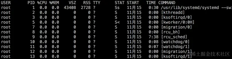T或t:(Stopped 或 Traced)表示进程处于暂停或者跟踪状态