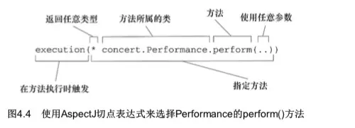 4)对于方法参数列表,我们使用两个点号(..)表明切点要选择任意的perform()方法,无论该方法的 入参是什么。
