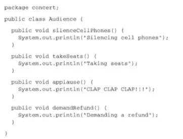例如,我们重新看一下Audience类,这一次我们将它所有的AspectJ注解全部移除掉: