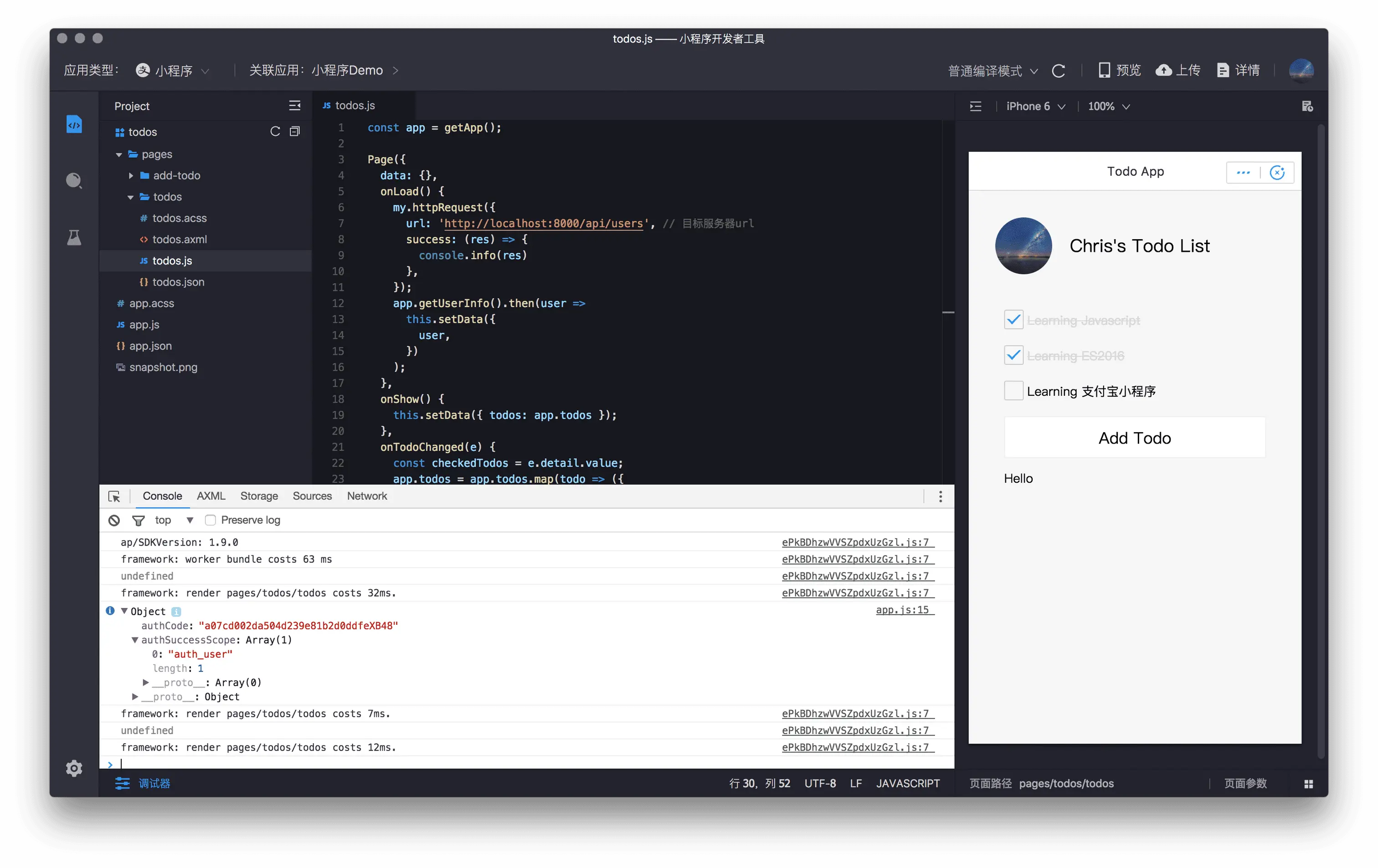 - 在 IDE 中查看小程序在手机端的运行日志
