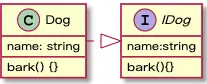 实现就很好理解了, 就是具体类对接口的关系. 用虚线三角箭头从具体类指向接口