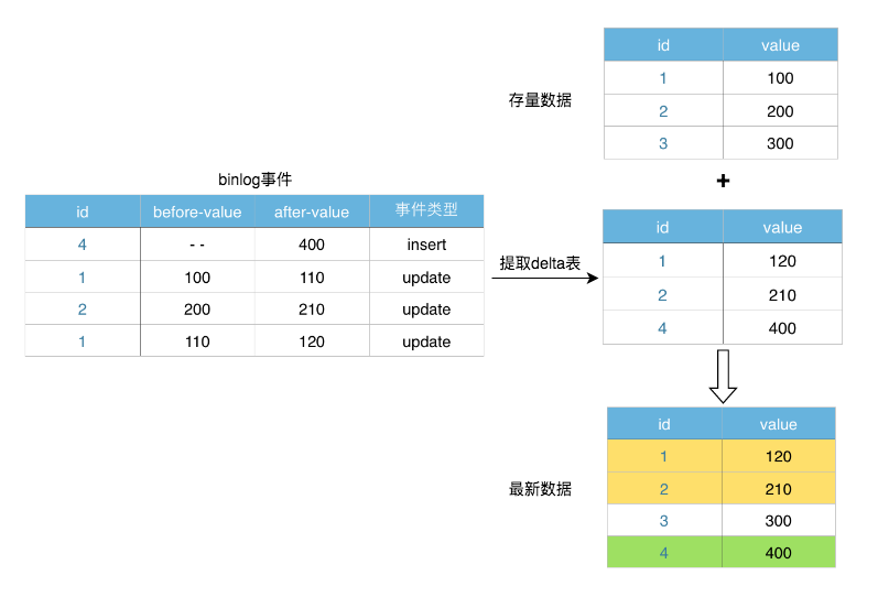 第二,Binlog本身记录了数据变更的类型(Insert/Update/Delete),通过一些语义方面的处理,完全能够做到精准的数据还原。