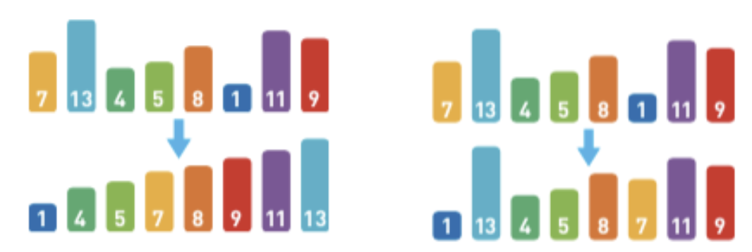 这是一个以随意 排列的整数为输入,把它们按从小到大的顺序重新排 列的问题。虽然在这个示例中输入的整数个数 n 为 8, 然而不管 n 多大,算法都必须将问题解决。