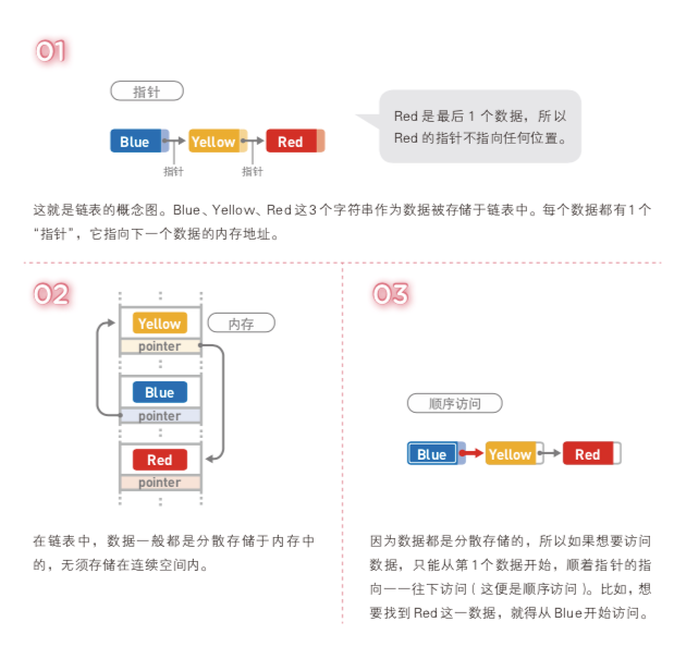 数据呈线性排列。在链表中,数据的添加和删除都较为方便,就是访问比较耗费时间。