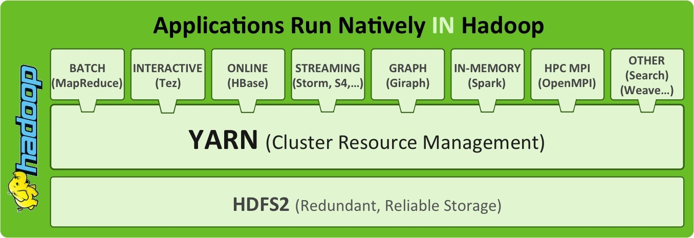 当企业的数据在HDFS中是可用的,有多种数据处理方式是非常重要的。有了Hadoop2.0和YARN,机构可以采用流处理、互动数据处理方式以及其他的基于Hadoop的应用程序。