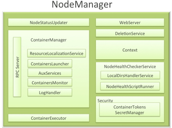 - 执行 Yarn 上面应用的一些额外的服务,比如 MapReduce 的 shuffle 过程;