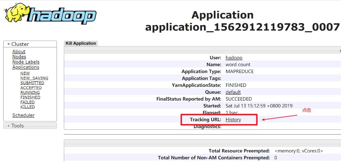2.6.1 如果我们没有启动jobhistoryserver时我们运行一个mapreduce程序在yarn上看到什么呢?
