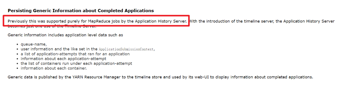 用来写日志服务数据 , 一般来写与第三方结合的日志服务数据(比如spark等),从官网的介绍看,它是对jobhistoryserver功能的有效补充,jobhistoryserver只能对mapreduce类型的作业信息进行记录,除了jobhistoryserver能够进行对作业运行过程中信息进行记录之外还有更细粒度的信息记录,比如任务在哪个队列中运行,运行任务时设置的用户是哪个用户。