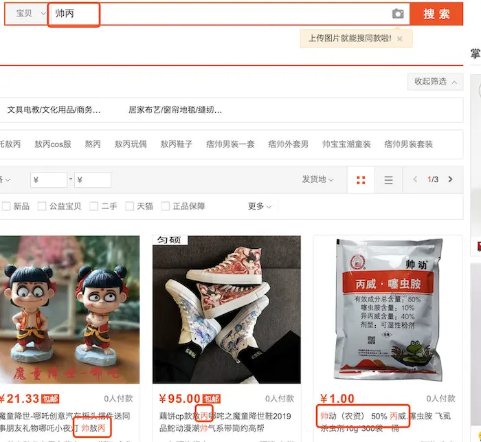 就比如大家去淘宝的查询的时候就会发现,你搜商品名称、颜色、标签等等多个维度都可以找到这个商品,就比如下图的搜索,我只是搜了【帅丙】你会发现,名字里面也没有连续的帅丙两个字,有帅和丙的出来了