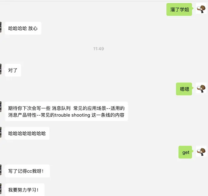 敖丙啊,又有牌面了,得到阿里消息中间件团队小伙伴的认可,并且发现居然是我学姐-风云(花名)!!!