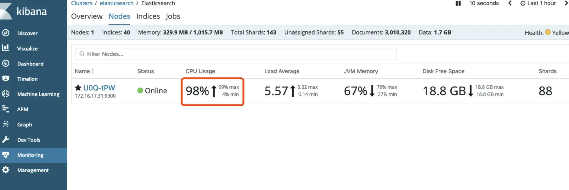 突然,说时迟那时快,运维打来了紧急电话ES集群CPU打到了99%要挂了,我的心蓦然一痛,心里还在庆幸还是集群没崩。