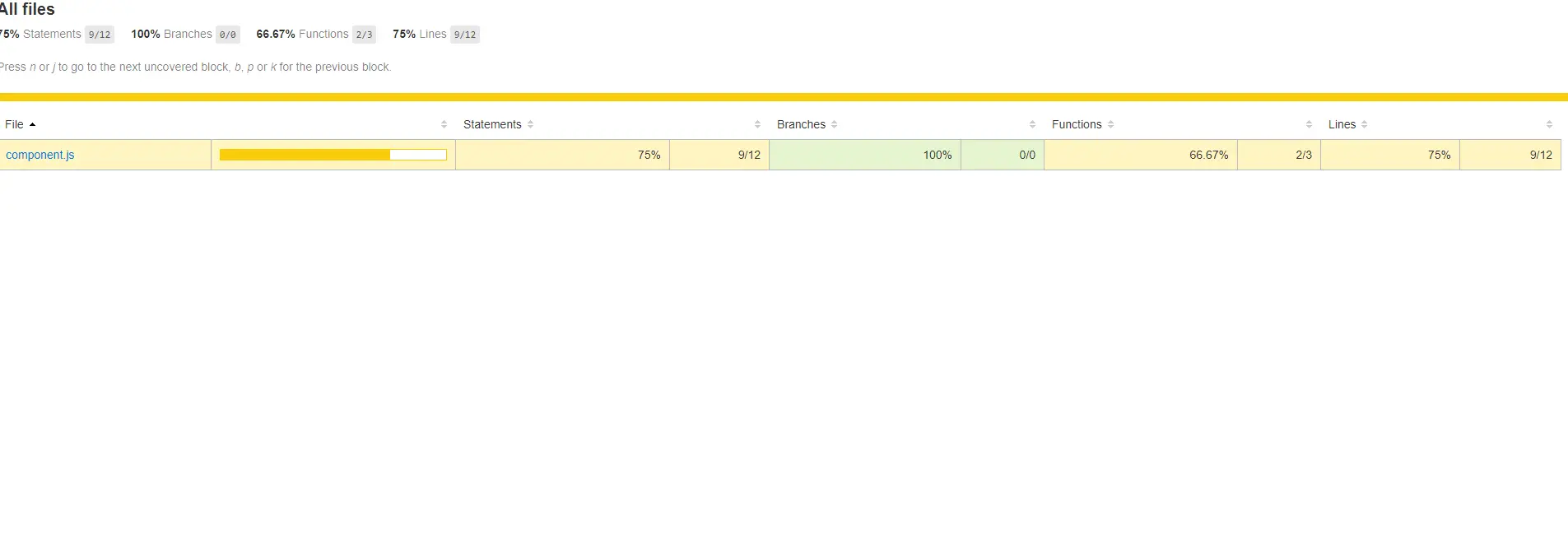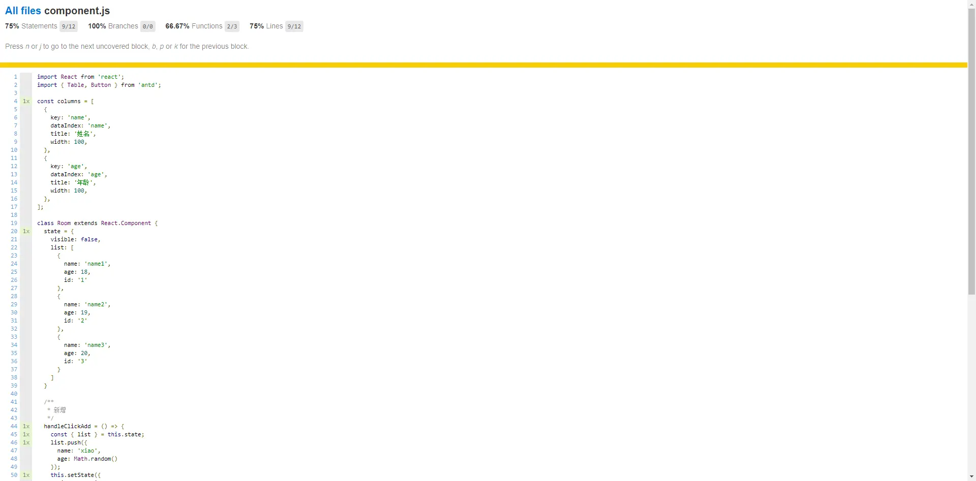 %stmts是语句覆盖率(statement coverage):是不是每个语句都执行了
