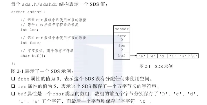 SDS中buf数组的长度 不一定就是字符数量加一,数组中可以包含未使用的字节,数量则保存在free属性中。