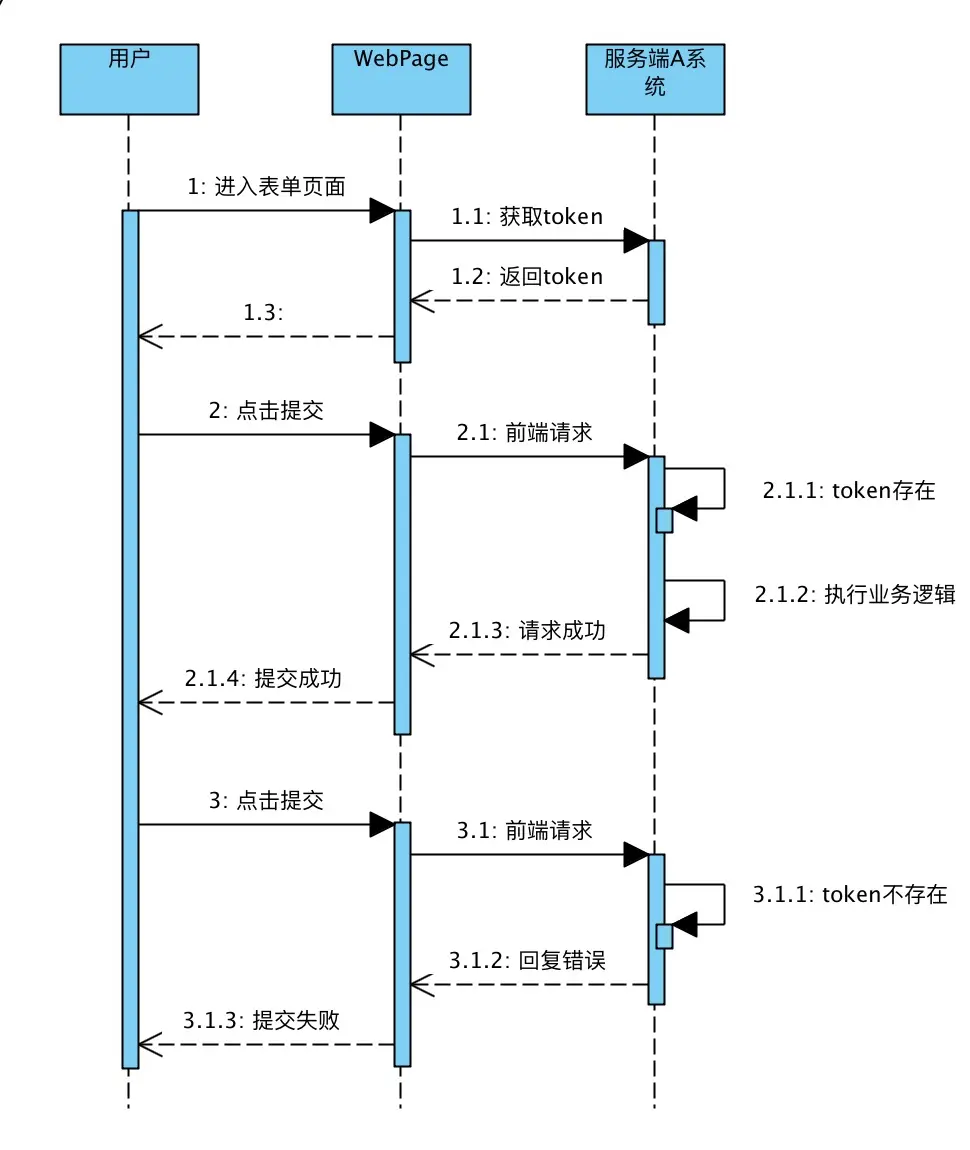 (1)当用户进入到表单页面的时候,前端会从服务端申请到一个token,并保存在前端。