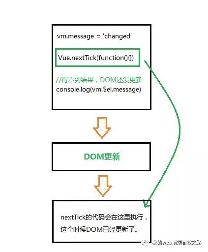 此时通过 Vue.nextTick 获取到改变后的 DOM 。通过 setTimeout(fn, 0) 也可以同样获取到。
